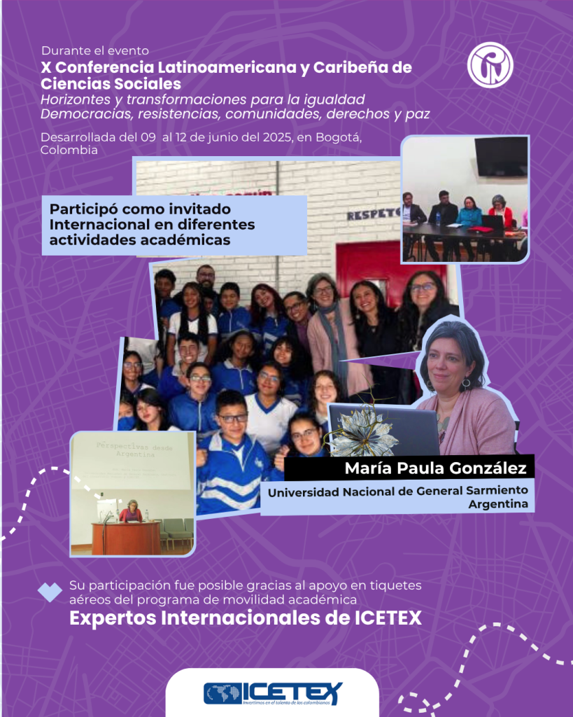 En el marco de la X Conferencia Latinoamericana y Caribeña de Ciencias Sociales (CLACSO 2025), la Universidad Pedagógica Nacional recibió a la profesora María Paula González, de la Universidad Nacional de General Sarmiento (Argentina), quien participó en una serie de actividades académicas orientadas a fortalecer el diálogo regional sobre las políticas educativas y la formación docente en ciencias sociales.